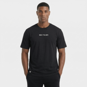 Donde otros ven límites, nosotros vemos un horizonte. La Camiseta ‘Fuck Limits’ Negra es un eco para el individuo que no se conforma, para aquel que comprende que las reglas son solo un punto de partida y los obstáculos, una invitación a la grandeza.