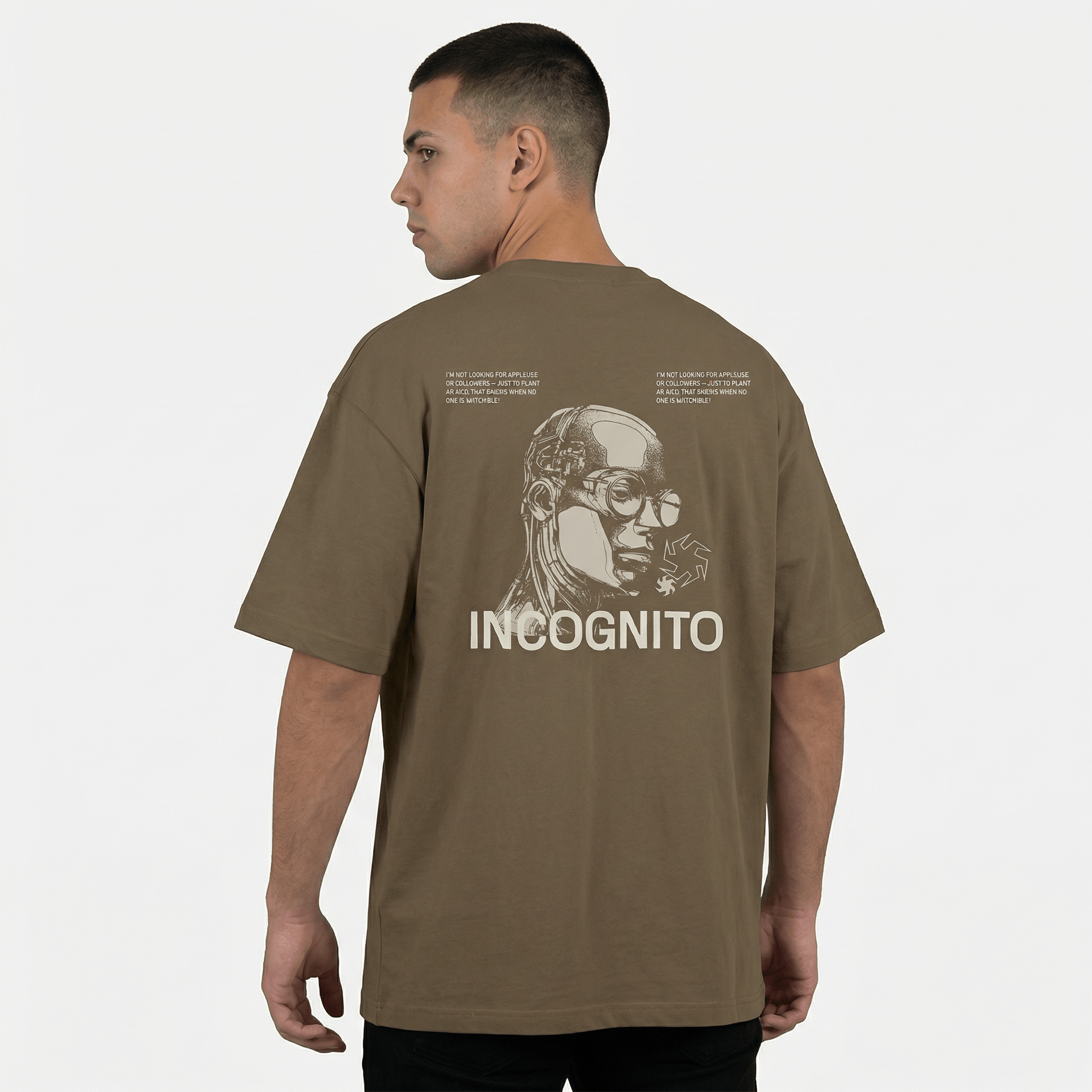 Deja que tu estilo hable por ti. La Camiseta Oversize Incógnito en tono Mocca es para quienes lideran en silencio, con una confianza que se siente, no se anuncia. Una silueta de comodidad que inspira presencia.