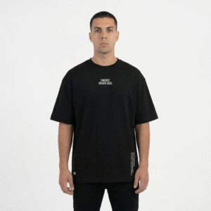 Más que una camiseta oversize negra, un manifiesto. La expresión de una energía que nunca se extingue. Viste tu perseverancia y deja que tu presencia resuene en el asfalto.