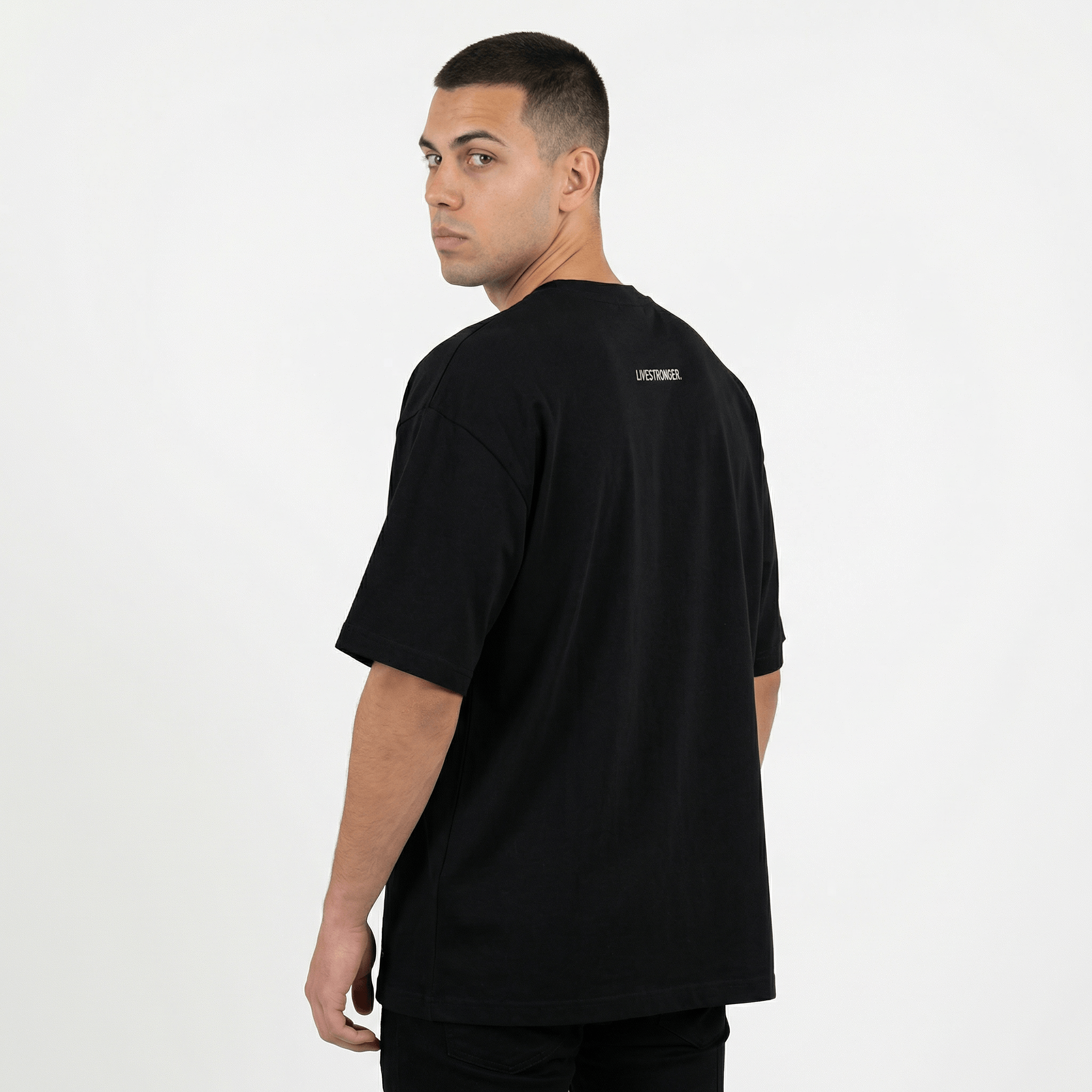 Deja que tu presencia hable. Esta pieza no es solo parte de una colección, es una filosofía. Es la fuerza que reside en la simplicidad. Es Livestronger. Hazla parte de tus esenciales.